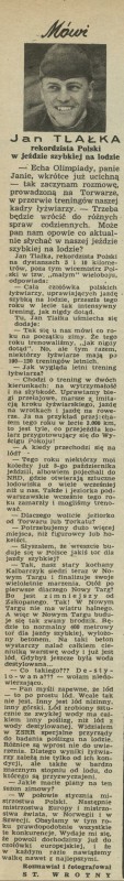 Archiwum / Sport nr 613 (02/1957) 123/3043 Podziel się Tytuł Mówi Jan Tlałka - rekordzista Polski w jeździe szybkiej na lodzie Autor Stanisław Wrotny Rubryka Sport Artykuł z numeru 613 (2/1957) Data wydania 6 stycznia 1957