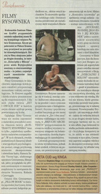 Archiwum / Film nr 2771 (27/1998) 119327/123969 Podziel się Tytuł Filmy rysownika Autor Krzysztof Żurek Rubryka Film Artykuł z numeru 2771 (2772/1998) Data wydania 2 sierpnia 1998 Tagi film greenaway