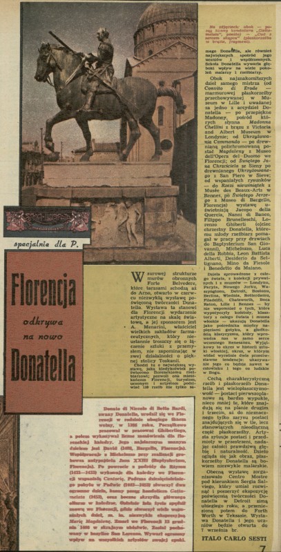 Archiwum / korespondencja własna "Przekroju" nr 2148 (32/1986) 558/807 Podziel się Tytuł Florencja odkrywa na nowo Donatella Autor Italo Carlo Sesti Rubryka korespondencja własna "Przekroju" Artykuł z numeru 2148 (32/1986) Data wydania 10 sierpnia 1986 Tagi Donatello sztuka Centro Mostre Florencja