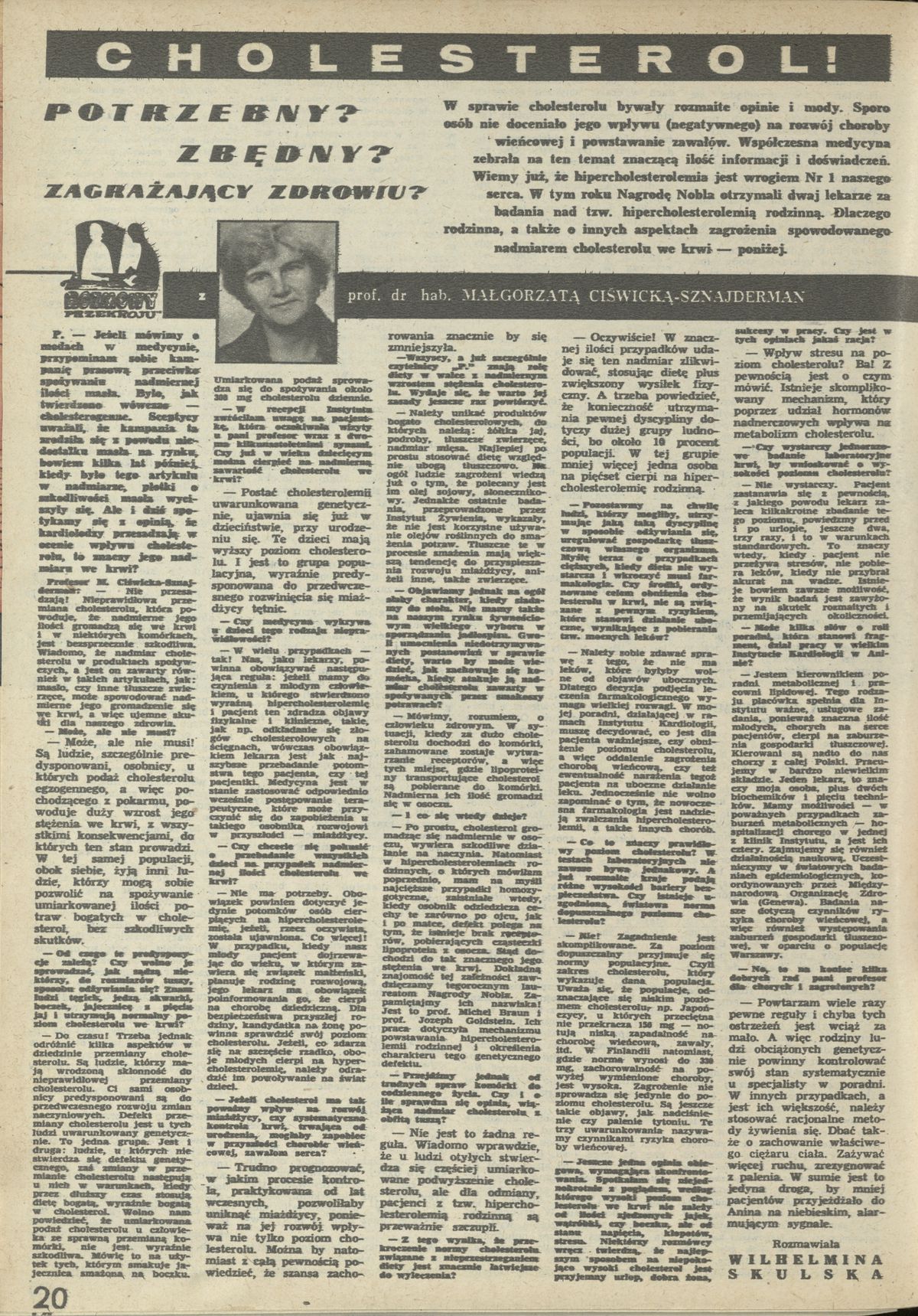 Archiwum / Rozmowy „Przekroju” nr 2148 (32/1986) 88094/123969 Podziel się Tytuł Cholesterol! Autor Wilhelmina Skulska Rubryka Rozmowy „Przekroju” Artykuł z numeru 2148 (32/1986) Data wydania 10 sierpnia 1986 Tagi Małgorzata Ciświcka-Sznajderman zdrowie tłuszcz