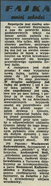 Archiwum / Fajka mniej szkodzi nr 2224 (04/1988) 08/105 Podziel się Tytuł Fajka mniej szkodzi Autor Zbigniew Turek Rubryka Fajka mniej szkodzi Artykuł z numeru 2224 (4/1988) Data wydania 24 stycznia 1988 Tagi fajczarze fajka palenie