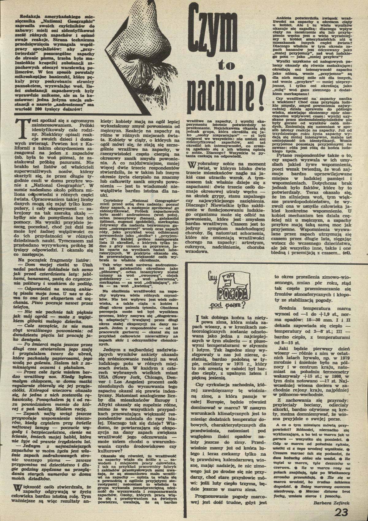 Archiwum / Artykuł nr 2230 (10/1988) 91663/123969 Podziel się Tytuł Czym to pachnie? Autor et Kategoria Artykuł Artykuł z numeru 2230 (10/1988) Data wydania 6 marca 1988