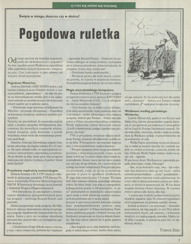 Archiwum nr 2805 (28/1999) 13/13 Podziel się Tytuł Pogodowa ruletka Autor Tomasz Zieja Artykuł z numeru 2805 (2806/1999) Data wydania 28 marca 1999 Tagi meteorologia