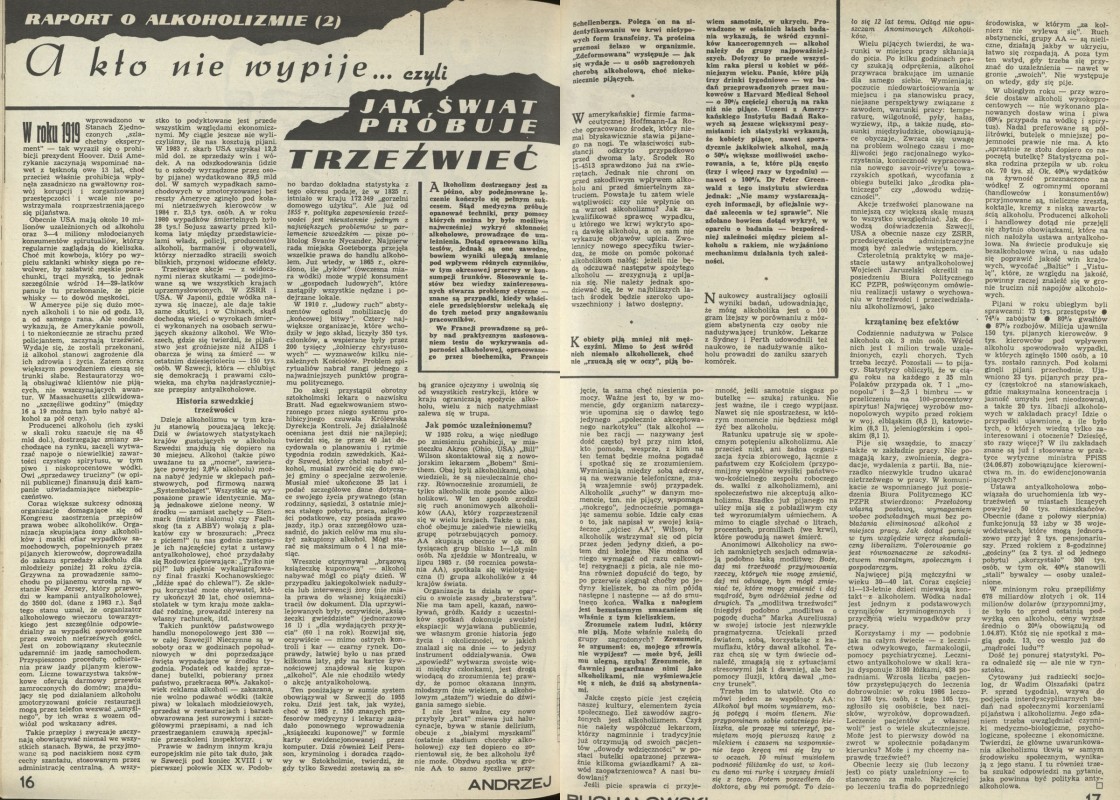 Archiwum / Opowiadanie nr 2207 (39/1987) 40/77 Podziel się Tytuł A kto nie wypije... Autor Andrzej Ruchałowski Kategoria Opowiadanie Artykuł z numeru 2207 (39/1987) Data wydania 27 września 1987