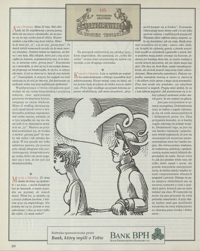 Archiwum nr 2805 (28/1999) 23/190 Podziel się Tytuł Savoir-vivre na koniec tysiąclecia Artykuł z numeru 2805 (2806/1999) Data wydania 28 marca 1999 Tagi dobre wychowanie