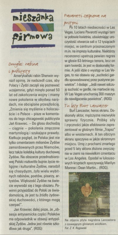 Archiwum / Mieszanka firmowa nr 2805 (28/1999) 2535/123969 Podziel się Tytuł Mieszanka firmowa Rubryka Mieszanka firmowa Artykuł z numeru 2805 (2806/1999) Data wydania 28 marca 1999 Tagi rabin Pavarotti Lancaster