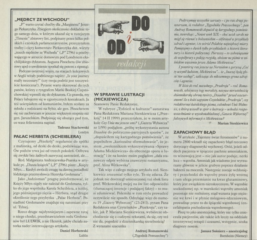 Archiwum / Listy do i od redakcji nr 2805 (28/1999) 13/48 Podziel się Tytuł Do i od redakcji Rubryka Listy do i od redakcji Artykuł z numeru 2805 (2806/1999) Data wydania 28 marca 1999 Tagi Mickiewicz feromony