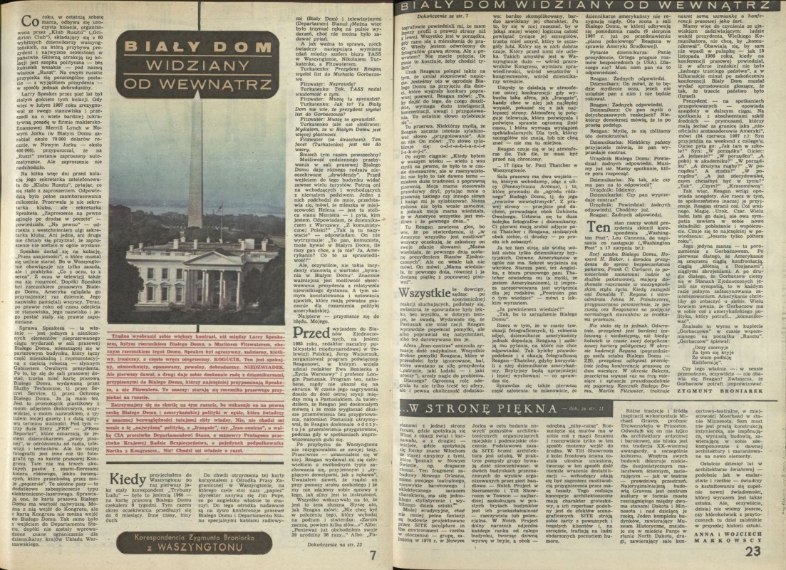 Archiwum / korespondencja własna "Przekroju" nr 2208 (40/1987) 07/129 Podziel się Tytuł Biały dom widziany od wewnątrz Autor Zygmunt Broniarek Rubryka korespondencja własna "Przekroju" Artykuł z numeru 2208 (40/1987) Data wydania 4 października 1987