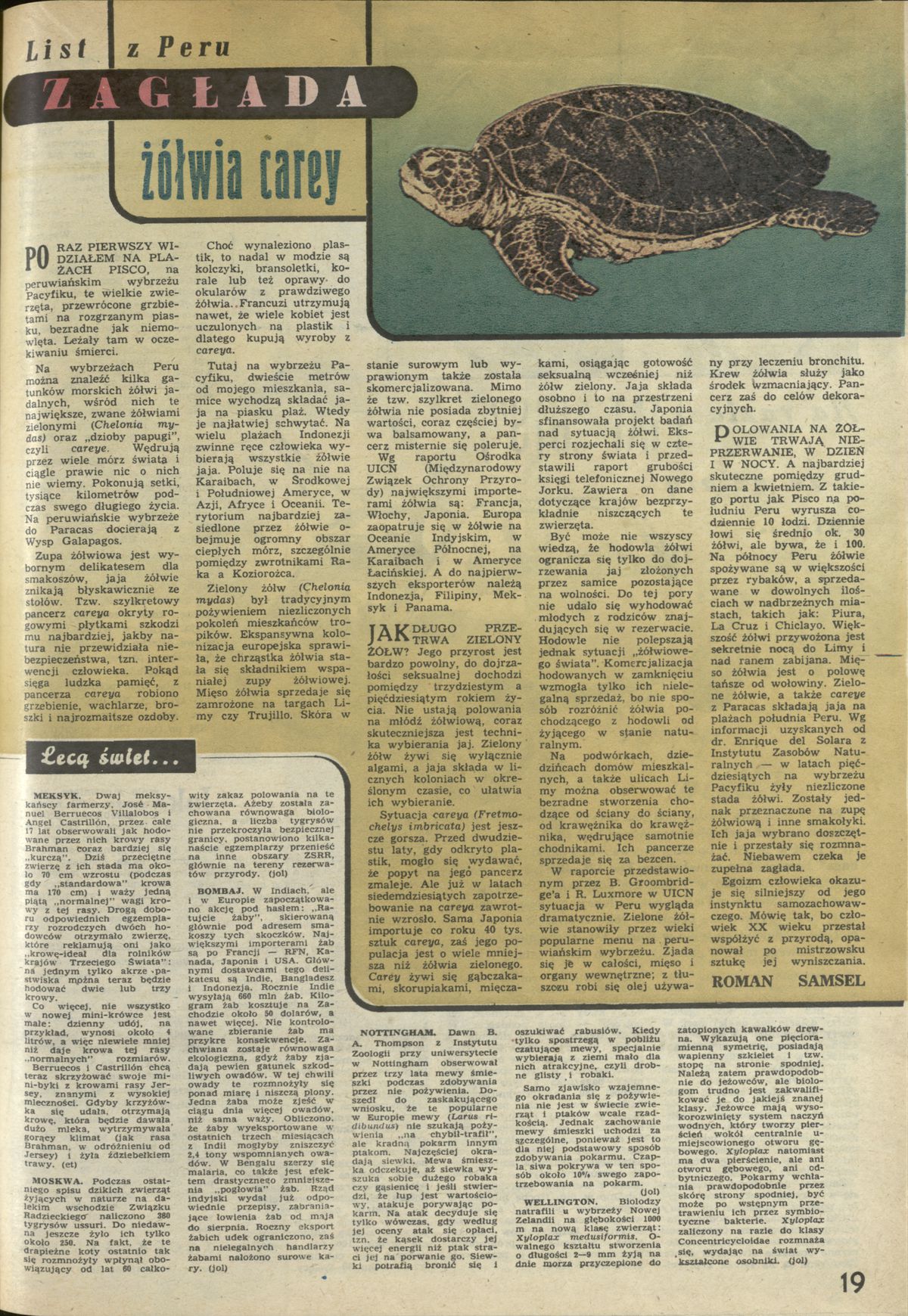 Archiwum / korespondencja własna "Przekroju" nr 2208 (40/1987) 378/513 Podziel się Tytuł Zagłada żółwia carey Autor Roman Samsel Rubryka korespondencja własna "Przekroju" Artykuł z numeru 2208 (40/1987) Data wydania 4 października 1987