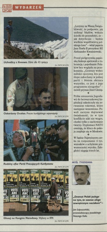 Archiwum / Przekrój tygodnia nr 2817 (28/1999) 122142/123969 Podziel się Tytuł Przekrój wydarzeń Rubryka Przekrój tygodnia Artykuł z numeru 2817 (2818/1999) Data wydania 20 czerwca 1999 Tagi Kosowo.kurdowie