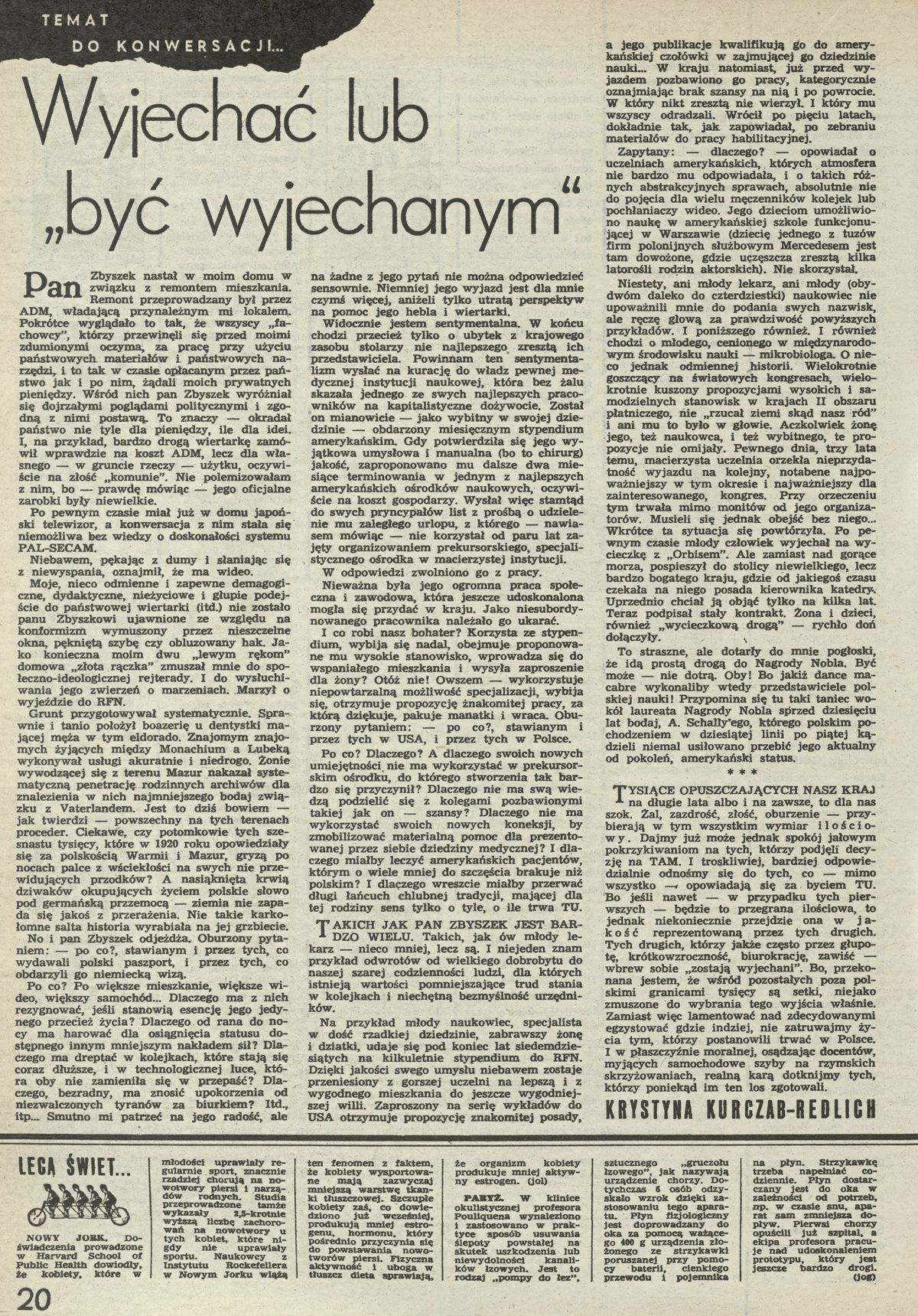 Archiwum / Artykuł nr 2250 (30/1988) 92502/123969 Podziel się Tytuł Wyjechać lub być wyjechanym Autor Krystyna Kurczab-Redlich Kategoria Artykuł Artykuł z numeru 2250 (30/1988) Data wydania 24 lipca 1988