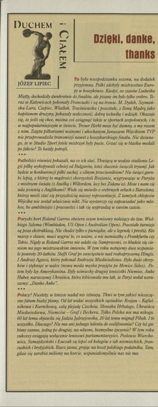 Archiwum / Sport nr 2817 (28/1999) 410/424 Podziel się Tytuł Dzięki,danke,thanks Autor Józef Lipiec Rubryka Sport Artykuł z numeru 2817 (2818/1999) Data wydania 20 czerwca 1999 Tagi koszykówka futbol
