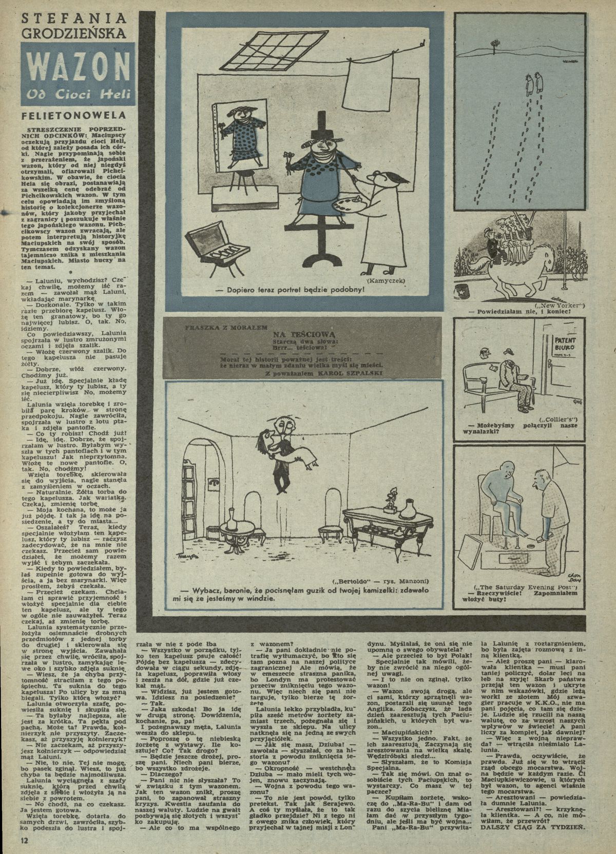 Archiwum / Opowiadanie nr 122 (32/1947) 38/92 Podziel się Tytuł Wazon od Cioci Heli Autor Stefania Grodzieńska Kategoria Opowiadanie Artykuł z numeru 122 (32/1947) Data wydania 10 sierpnia 1947