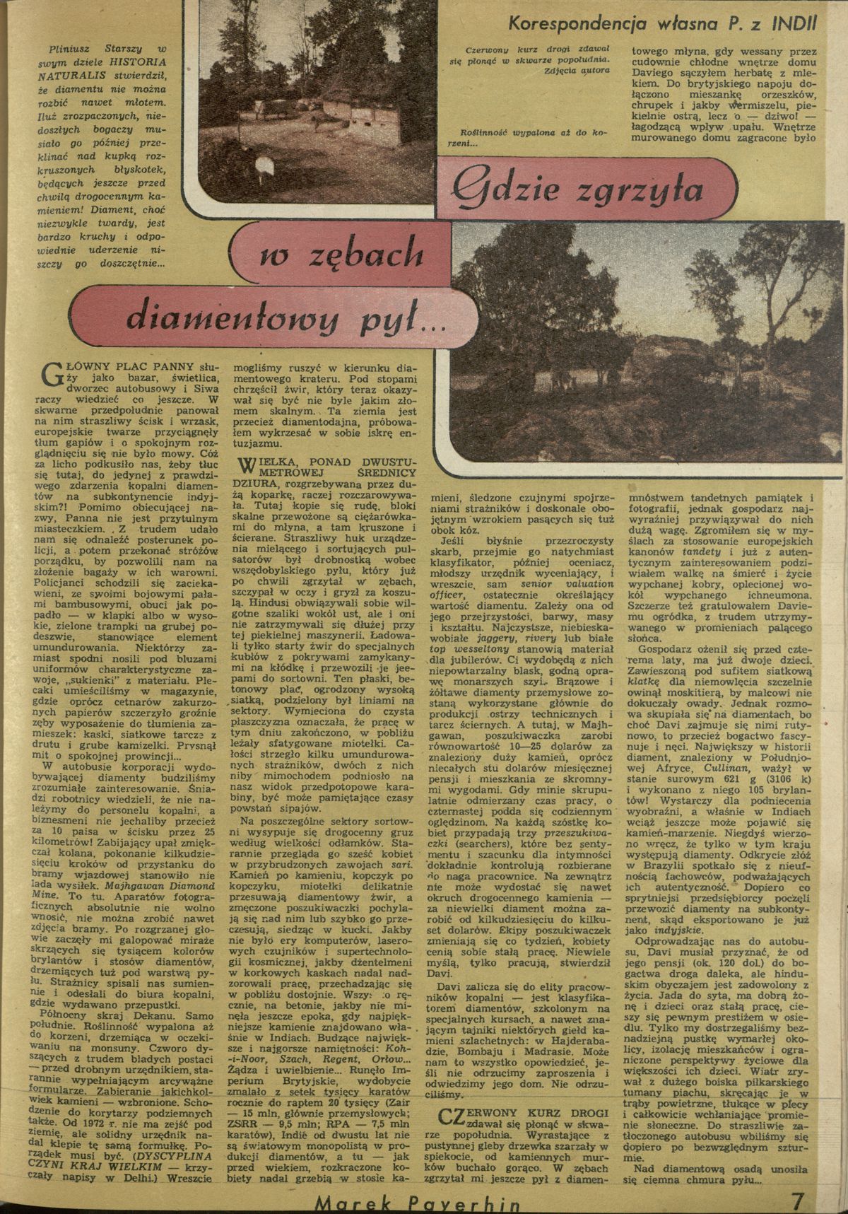Archiwum / korespondencja własna "Przekroju" nr 2149 (33/1986) 1/1 Podziel się Tytuł Gdzie zgrzyta w zębach diamentowy pył Autor Marek Payerhin Rubryka korespondencja własna "Przekroju" Artykuł z numeru 2149 (33/1986) Data wydania 17 sierpnia 1986 Tagi Indie diamenty klejnoty Historia Naturalis