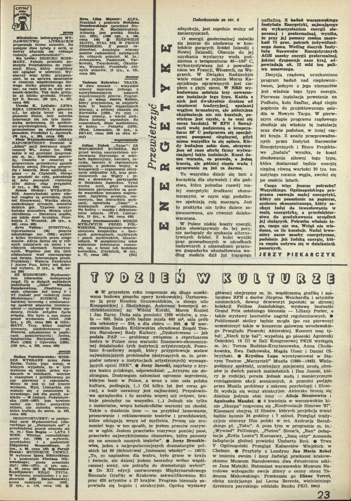 Archiwum / Tydzień w kulturze nr 2231 (11/1988) 91705/123969 Podziel się Tytuł Tydzień w kulturze Rubryka Tydzień w kulturze Artykuł z numeru 2231 (11/1988) Data wydania 13 marca 1988