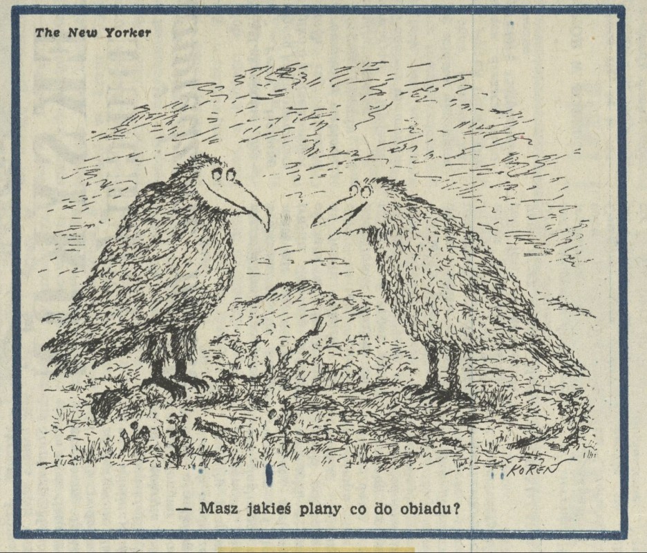 Archiwum / Rysunki z magazynu The New Yorker nr 2255 (35/1988) 228/313 Podziel się Tytuł Rysunek Autor The New Yorker Rubryka Rysunki z magazynu The New Yorker Artykuł z numeru 2255 (35/1988) Data wydania 28 sierpnia 1988