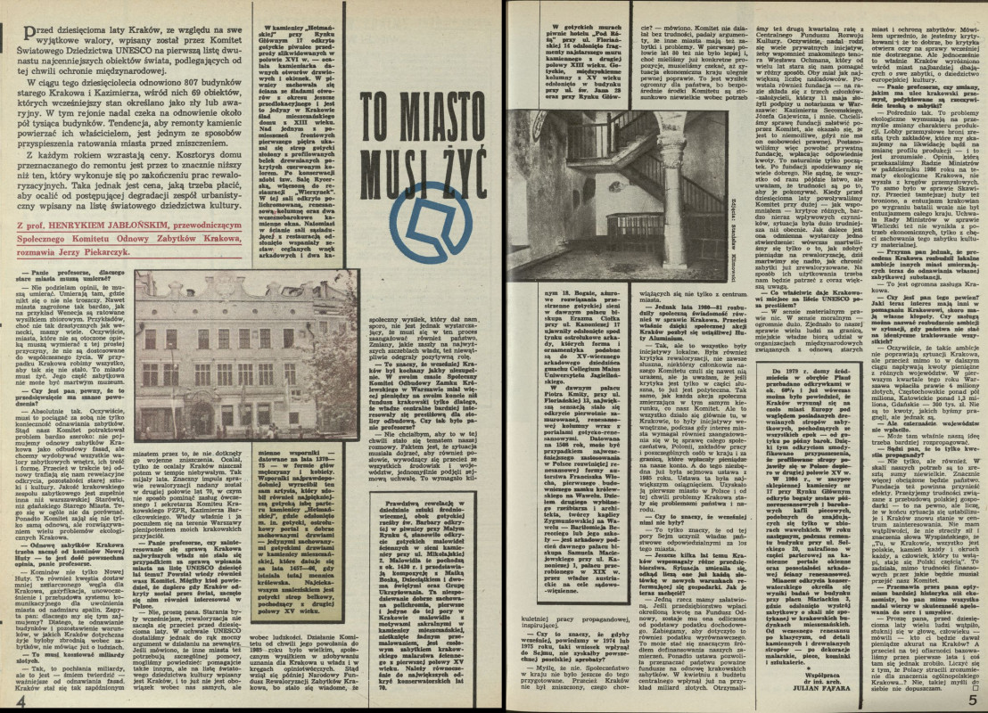 Archiwum / Wywiad nr 2246 (26/1988) 92315/123969 Podziel się Tytuł To miasto musi żyć Autor Jerzy Piekarczyk Kategoria Wywiad Artykuł z numeru 2246 (26/1988) Data wydania 26 czerwca 1988 Tagi Kraków Jabłoński Henryk