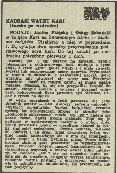 Archiwum / Jedno danie nr 2246 (26/1988) 13/23 Podziel się Tytuł Madrasi wathu kari (kaczka po madrasku) Autor Jan Kalkowski Rubryka Jedno danie Artykuł z numeru 2246 (26/1988) Data wydania 26 czerwca 1988 Tagi kuchnia przepis kulinarny gastronomia jedno danie