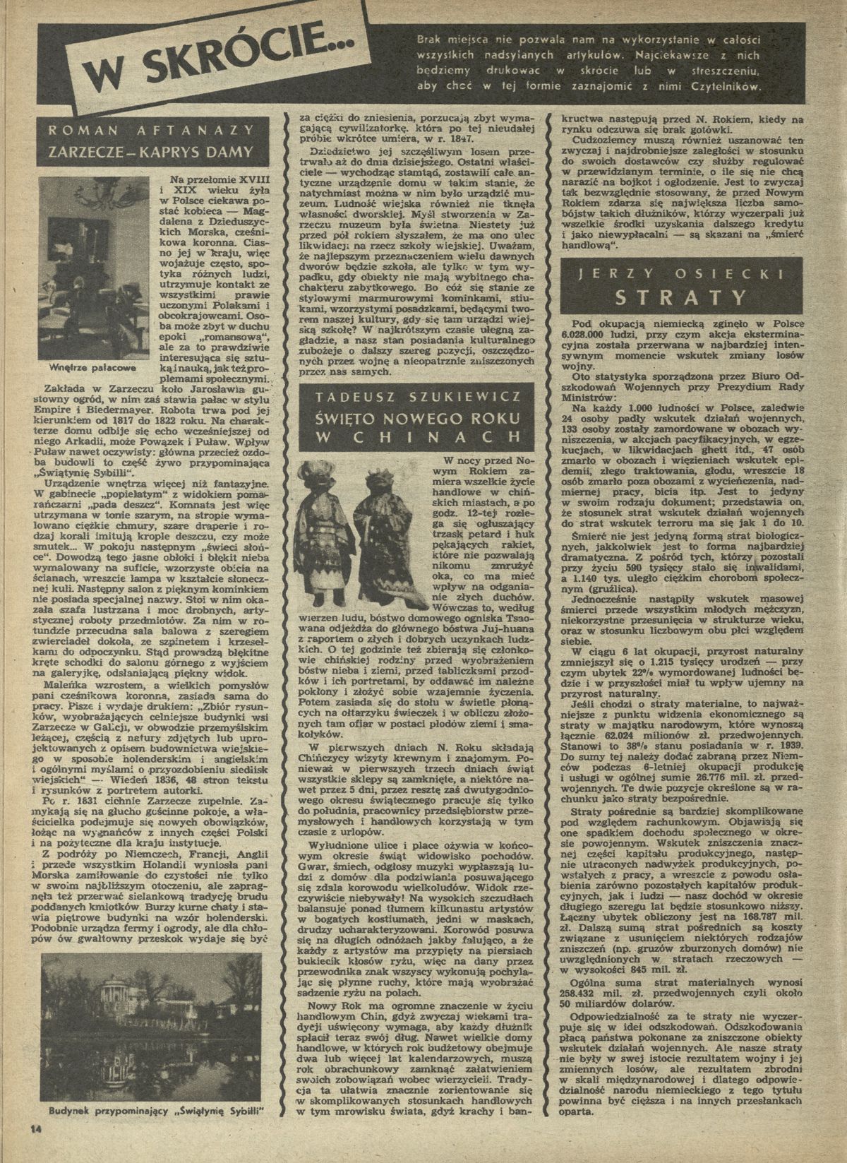 Archiwum / Społeczeństwo nr 100 (10/1947) 305/1638 Podziel się Tytuł W skrócie... Kategoria Społeczeństwo Artykuł z numeru 100 (10/1947) Data wydania 9 marca 1947 Tagi Roman Aftanazy Zarzecze Tadeusz Szukiewicz Jerzy Osiecki Straty