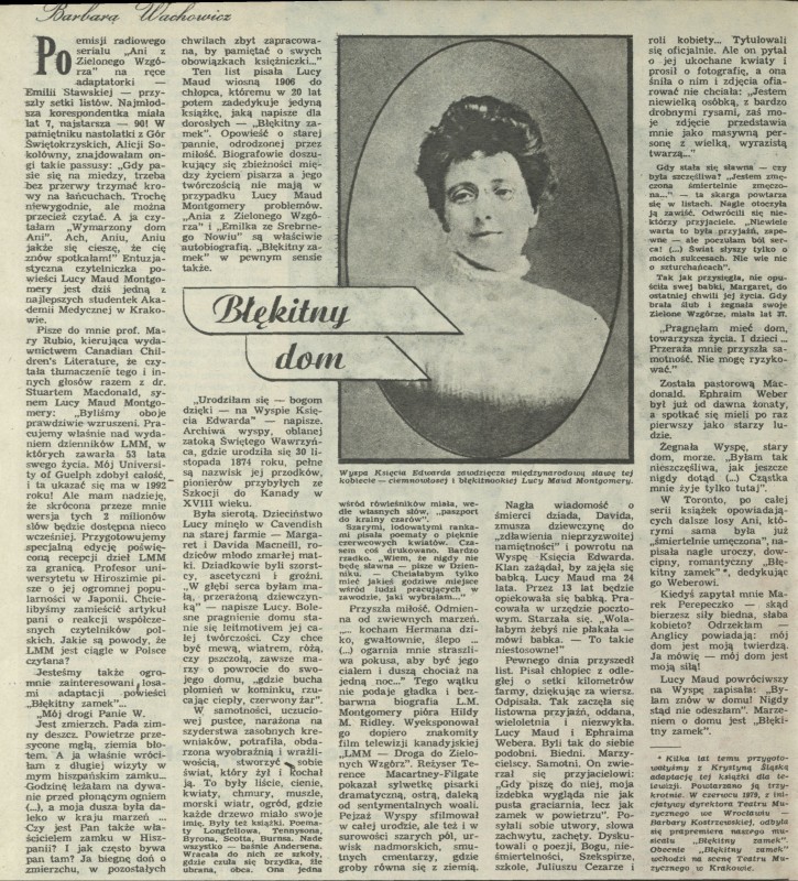 Archiwum / Artykuł nr 1957 (43/1982) 30/36 Podziel się Tytuł Błękitny dom Autor Barbara Wachowicz Kategoria Artykuł Artykuł z numeru 1957 (43/1982) Data wydania 12 grudnia 1982 Tagi ludzie biografia
