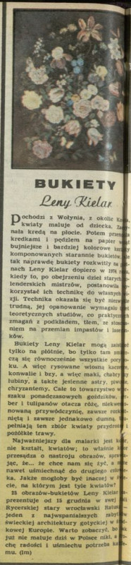 Archiwum / Różności nr 1957 (43/1982) 526/807 Podziel się Tytuł Bukiety Leny Kielar Autor jm Kategoria Różności Artykuł z numeru 1957 (43/1982) Data wydania 12 grudnia 1982 Tagi sztuka malarstwo obraz