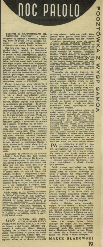 Archiwum / korespondencja własna "Przekroju" nr 2200 (32/1987) 2/5 Podziel się Tytuł Noc Palolo Autor Marek Bladowski Rubryka korespondencja własna "Przekroju" Artykuł z numeru 2200 (32/1987) Data wydania 9 sierpnia 1987 Tagi palolo Samoa Oceania