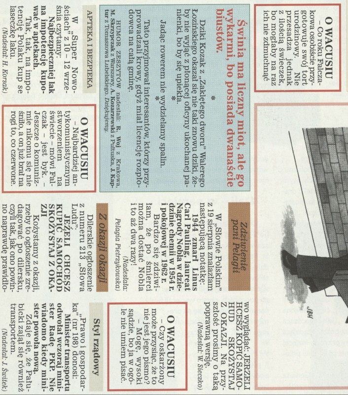 Archiwum / O Wacusiu nr 2834 (28/1999) 123275/123969 Podziel się Tytuł O Wacusiu Rubryka O Wacusiu Artykuł z numeru 2834 (2835/1999) Data wydania 17 października 1999 Tagi Falczak