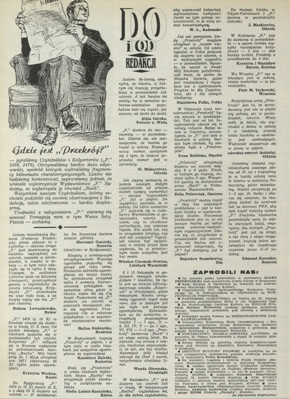 Archiwum / Listy do i od redakcji nr 2477 (24/1992) 5/7 Podziel się Tytuł Listy do i od redakcji Rubryka Listy do i od redakcji Artykuł z numeru 2477 (2478/1992) Data wydania 13 grudnia 1992 Tagi 'Przekrój" wyprzedane egzemplarze
