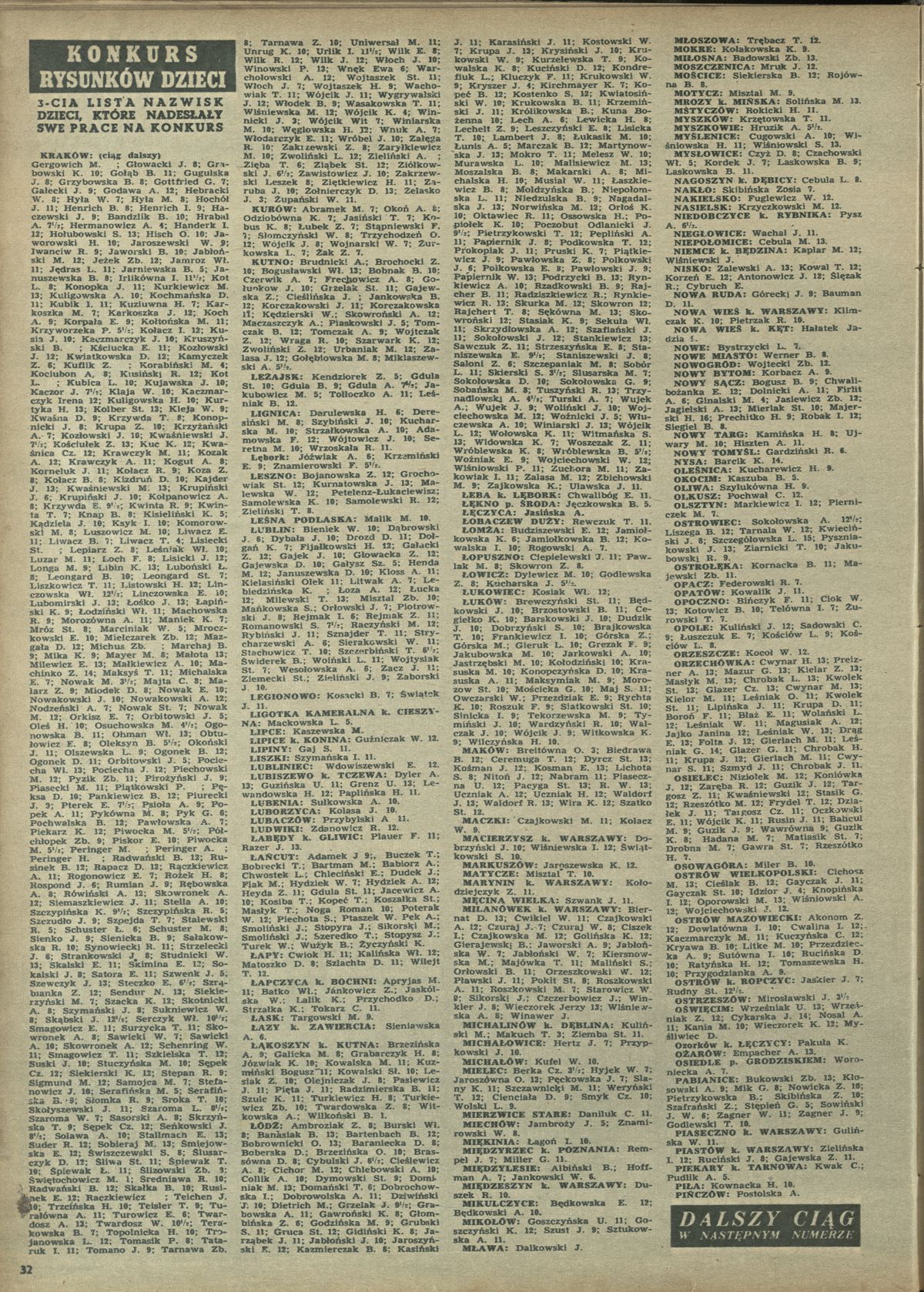 Archiwum / Konkurs nr 53-54 (15-16/1946) 13/18 Podziel się Tytuł Konkurs rysunków dla dzieci Rubryka Konkurs Artykuł z numeru 53-54 (15/1946) Data wydania 21 kwietnia 1946