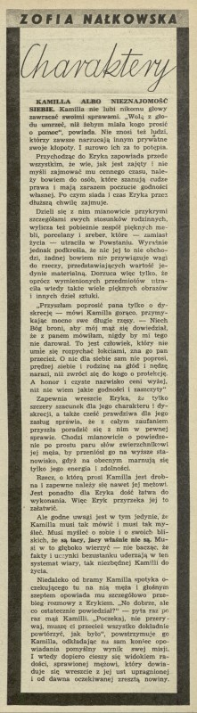 Archiwum / Felieton nr 126 (36/1947) 19/29 Podziel się Tytuł Charaktery Autor Zofia Nałkowska Kategoria Felieton Artykuł z numeru 126 (36/1947) Data wydania 7 września 1947 Tagi Kamilla albo nieznajomość siebie