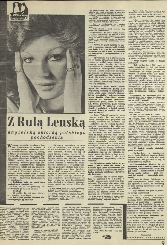 Archiwum / Rozmowy „Przekroju” nr 1960 (01/1983) 80595/123969 Podziel się Tytuł Z Rulą Lenską - angielską aktorką polskiego pochodzenia Autor Kazimierz Sobolewski Rubryka Rozmowy „Przekroju” Artykuł z numeru 1960 (1/1983) Data wydania 2 stycznia 1983 Tagi teatr