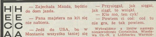 Archiwum / Heca hecą nr 2433 (24/1992) 370/1313 Podziel się Tytuł Heca hecą Rubryka Heca hecą Artykuł z numeru 2433 (2434/1992) Data wydania 9 lutego 1992