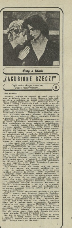 Archiwum / Listy o filmie nr 1986 (27/1983) 81726/123969 Podziel się Tytuł Zagubione rzeczy Autor Aleksandra Rubryka Listy o filmie Artykuł z numeru 1986 (27/1983) Data wydania 3 lipca 1983