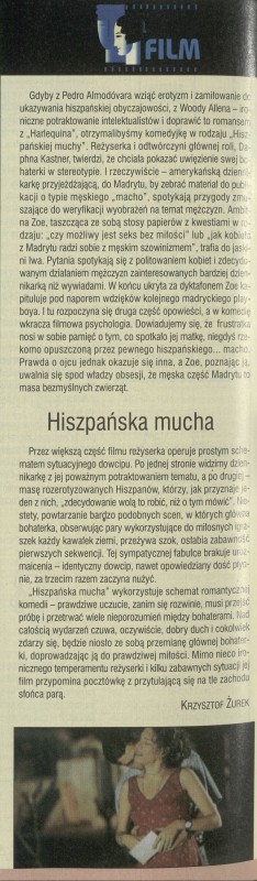 Archiwum / Film nr 2838 (28/1999) 2084/2096 Podziel się Tytuł Hiszpańska mucha Autor Krzysztof Żurek Rubryka Film Artykuł z numeru 2838 (2839/1999) Data wydania 14 listopada 1999 Tagi Almodovar