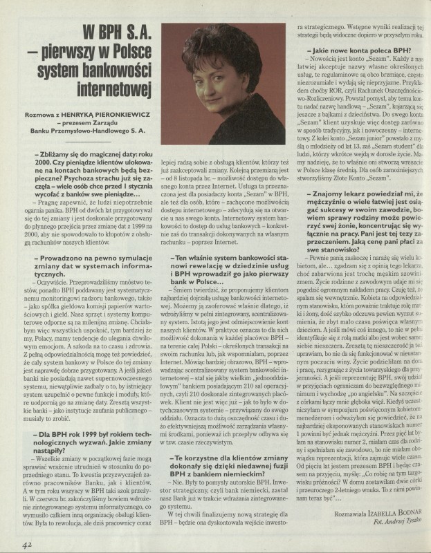 Archiwum / Rozmowy „Przekroju” nr 2838 (28/1999) 2/2 Podziel się Tytuł W BPH S.A.pierwszy w Polsce system bankowości internetowej Autor Izabella Bodnar Rubryka Rozmowy „Przekroju” Artykuł z numeru 2838 (2839/1999) Data wydania 14 listopada 1999 Tagi bank
