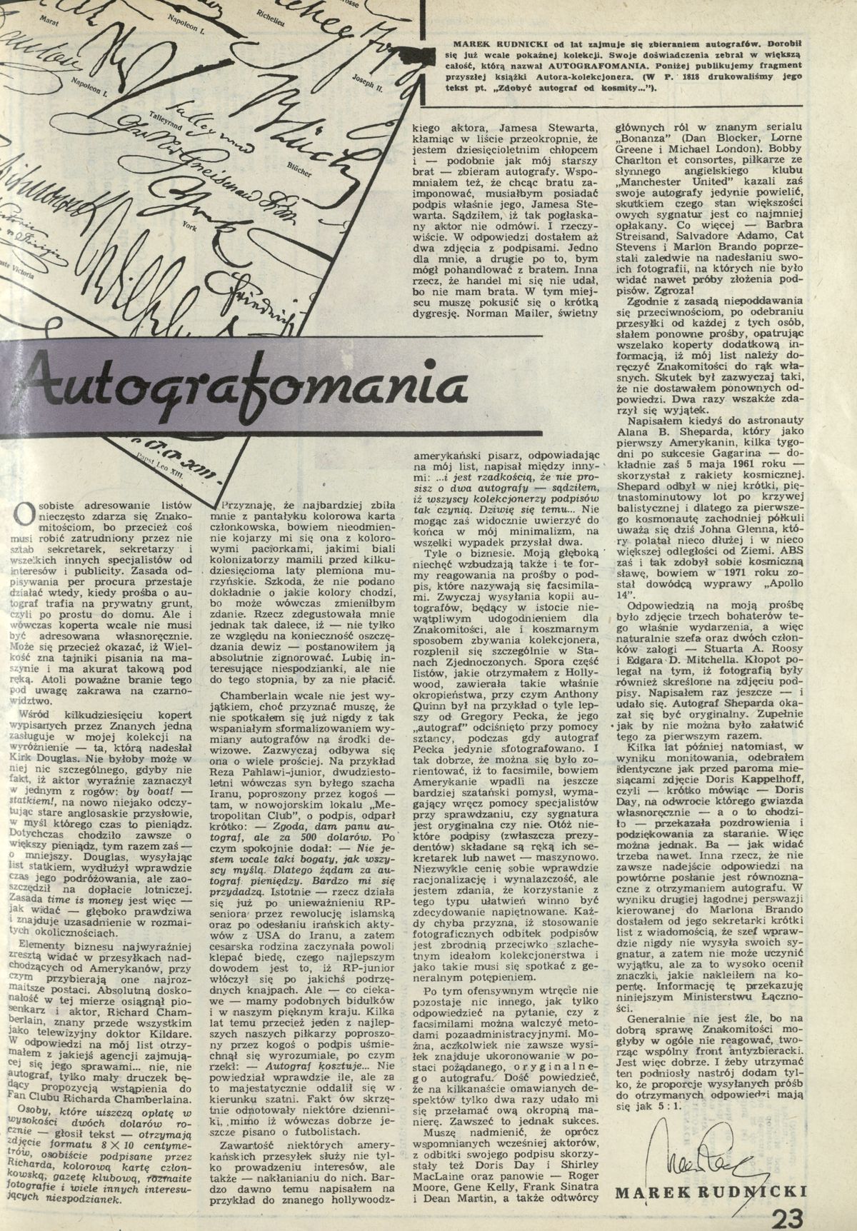 Archiwum / Artykuł nr 1988 (29/1983) 81810/123969 Podziel się Tytuł Autografomania Autor Marek Rudnicki Kategoria Artykuł Artykuł z numeru 1988 (29/1983) Data wydania 17 lipca 1983