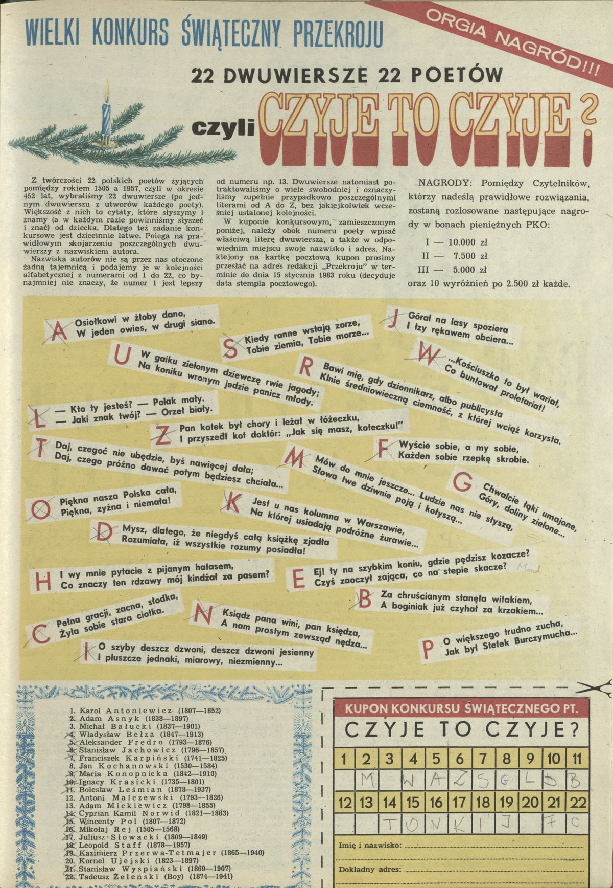 Archiwum / Konkurs nr specjalny 44/1982 766/781 Podziel się Tytuł Czyje to czyje? Autor Redakcja Rubryka Konkurs Artykuł z numeru nr specjalny 44/1982 Data wydania 19 grudnia 1982
