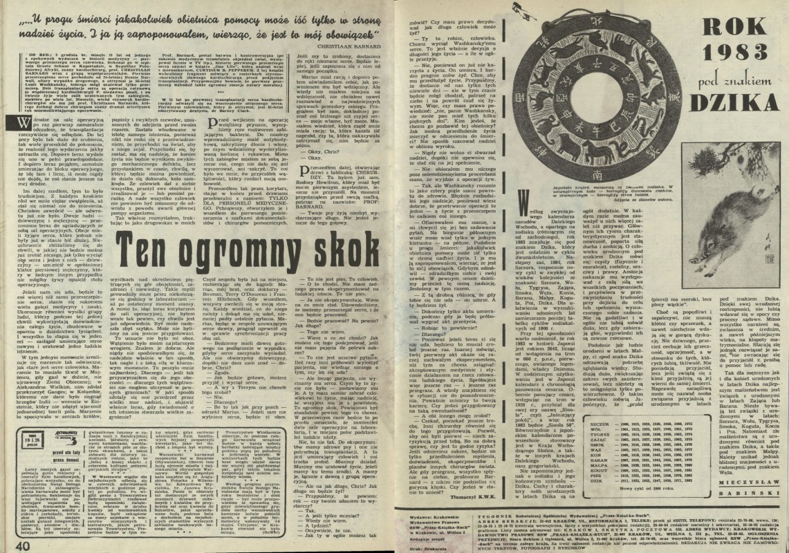Archiwum / Relacja nr specjalny 44/1982 80567/123969 Podziel się Tytuł Ten ogromny skok Autor Barnard Christian KWK Kategoria Relacja Artykuł z numeru nr specjalny 44/1982 Data wydania 19 grudnia 1982