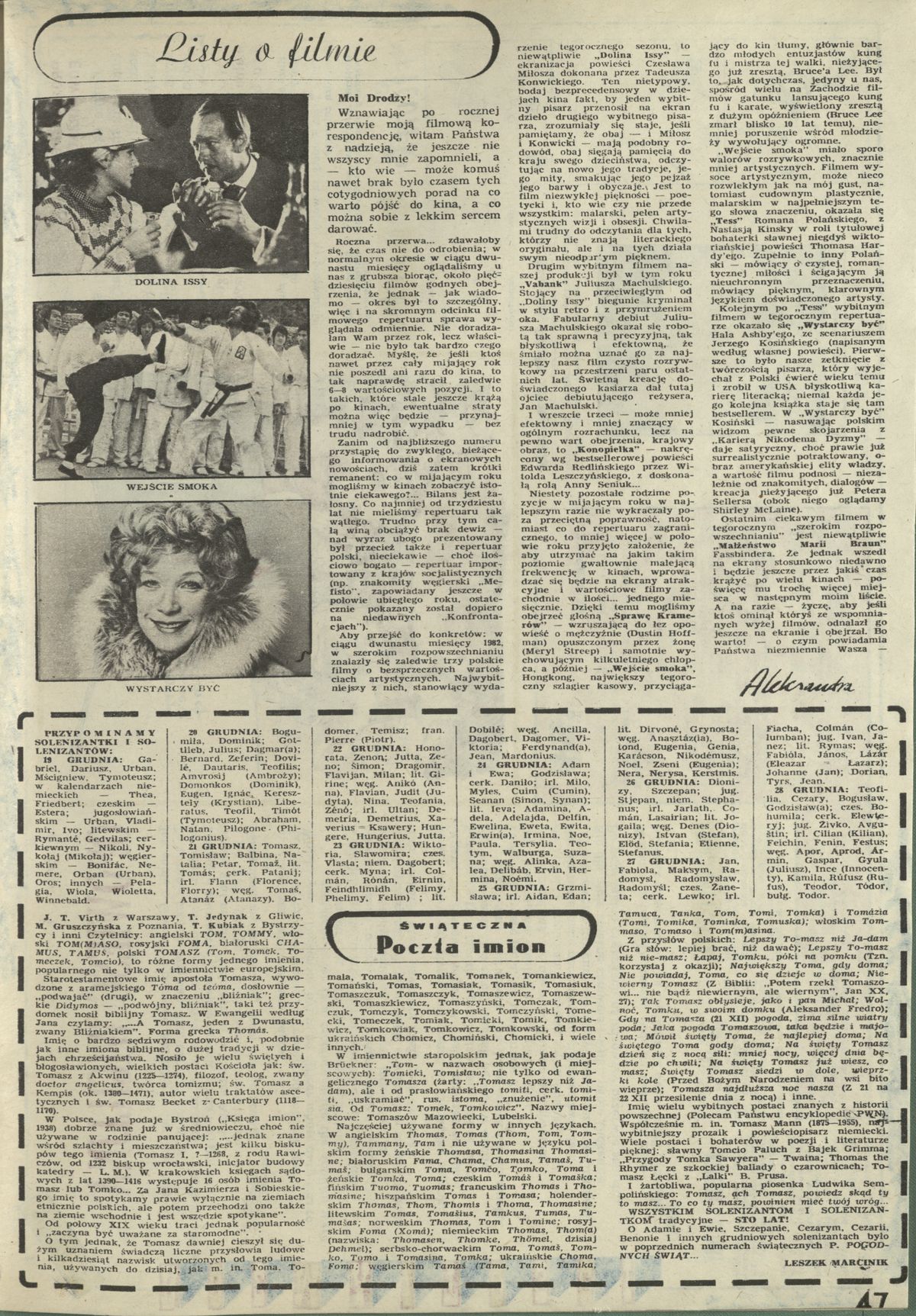 Archiwum / Listy o filmie nr specjalny 44/1982 46/46 Podziel się Tytuł Listy o filmie Autor Aleksandra Rubryka Listy o filmie Artykuł z numeru nr specjalny 44/1982 Data wydania 19 grudnia 1982