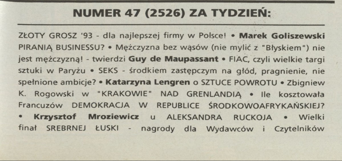 Archiwum nr 2525 (46/1993) 75/75 Podziel się Tytuł Numer 47/2526 za tydzień Artykuł z numeru 2525 (46/1993) Data wydania 14 listopada 1993 Tagi zapowiedzi