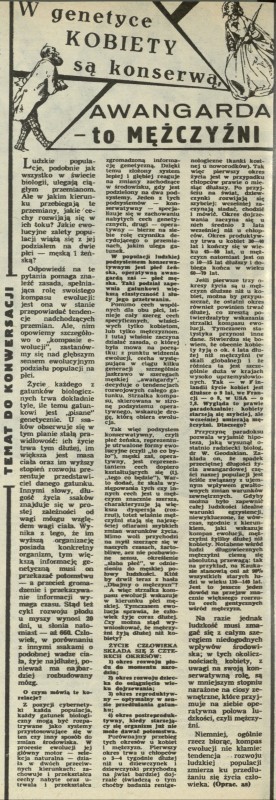 Archiwum / Artykuł nr 1965 (06/1983) 06/26 Podziel się Tytuł W genetyce kobiety są konserwą, awangarda - to mężczyźni Autor as Kategoria Artykuł Artykuł z numeru 1965 (6/1983) Data wydania 6 lutego 1983 Tagi biologia