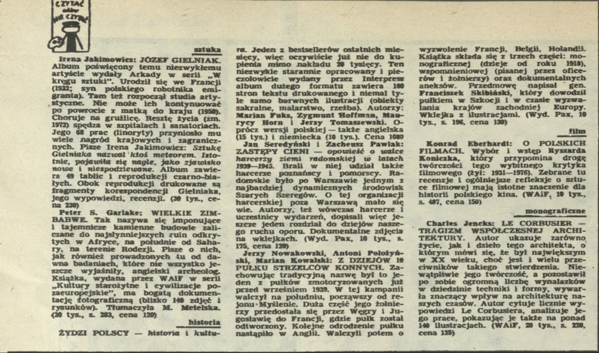 Archiwum / Czytać albo nie czytać? nr 1965 (06/1983) 80819/123969 Podziel się Tytuł Czytać albo nie czytać? Rubryka Czytać albo nie czytać? Artykuł z numeru 1965 (6/1983) Data wydania 6 lutego 1983