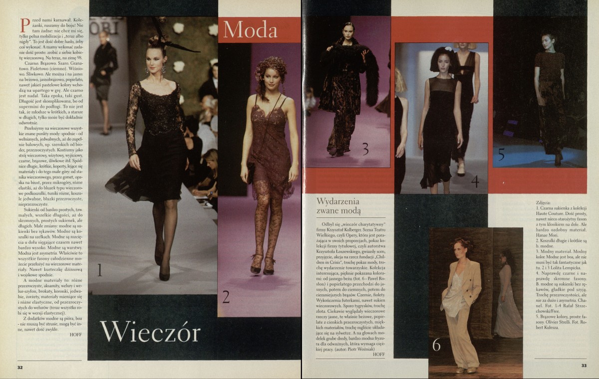 Archiwum / Moda nr 2737 (49/1997) 03/62 Podziel się Tytuł Wieczór Autor Barbara Hoff Rubryka Moda Artykuł z numeru 2737 (49/1997) Data wydania 7 grudnia 1997 Tagi suknie