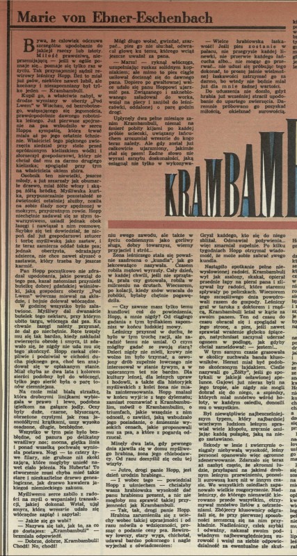 Archiwum / Proza nr 2239 (19/1988) 1/1 Podziel się Tytuł Krambambuli Autor Marie von Ebner-Eschenbach Kategoria Proza Artykuł z numeru 2239 (19/1988) Data wydania 8 maja 1988 Tagi Krambambuli Marie von Ebner-Eschenbach