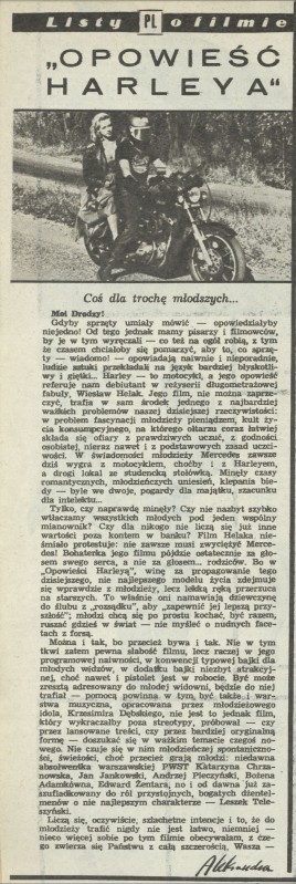 Archiwum / Listy o filmie nr 2240 (20/1988) 92100/123969 Podziel się Tytuł Listy o filmie Autor Aleksandra Rubryka Listy o filmie Artykuł z numeru 2240 (20/1988) Data wydania 15 maja 1988 Tagi Opowieść Harleya film
