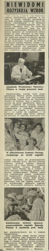Archiwum / Nauka nr 105 (15/1947) 33/130 Podziel się Tytuł Niewidomi odzyskują wzrok Kategoria Nauka Artykuł z numeru 105 (15/1947) Data wydania 19 kwietnia 1947 Tagi okulistyka choroby oczu Władymir Fiłatow