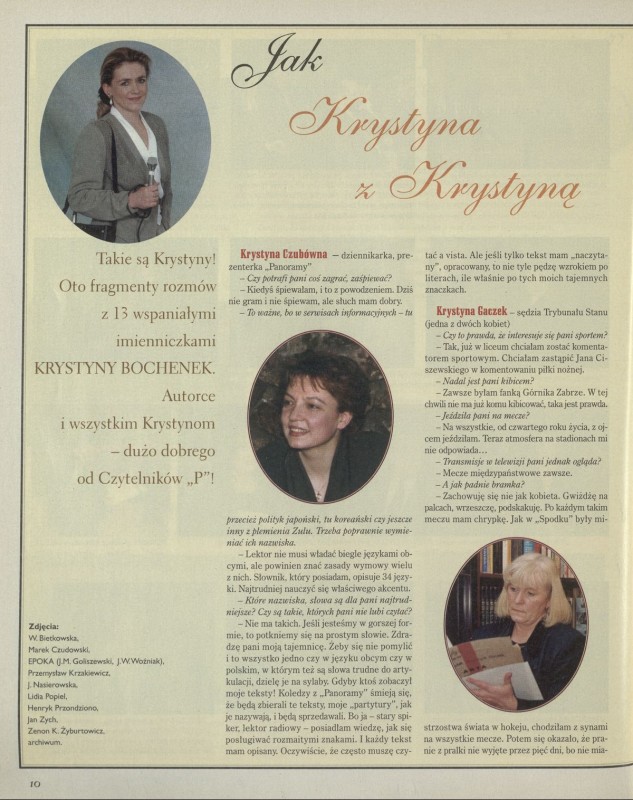 Archiwum / Artykuł nr 2751 (27/1998) 118198/123969 Podziel się Tytuł Jak Krystyna z Krystyną Kategoria Artykuł Artykuł z numeru 2751 (2752/1998) Data wydania 15 marca 1998 Tagi Czubówna Janda Kaszuba