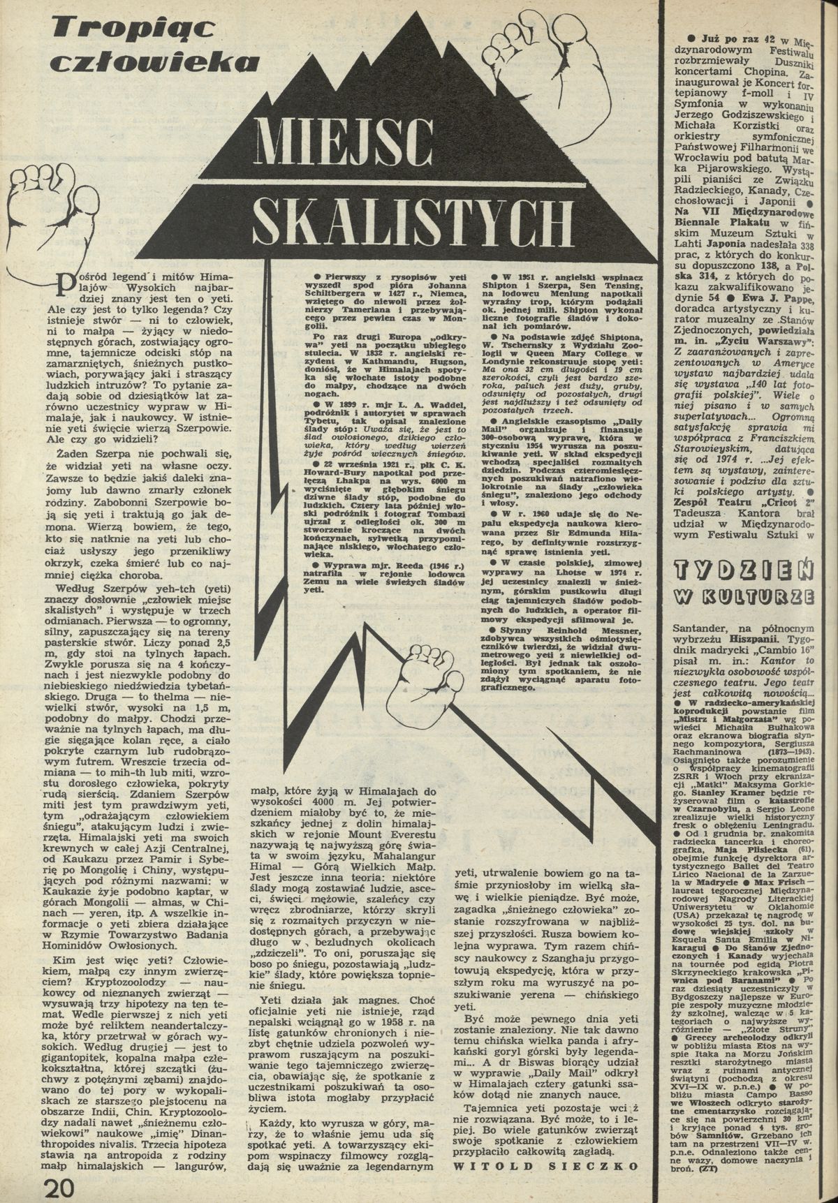 Archiwum / Nauka nr 2203 (35/1987) 42/57 Podziel się Tytuł Tropiąc człowieka miejsc skalistych Autor Witold Sieczko Kategoria Nauka Artykuł z numeru 2203 (35/1987) Data wydania 30 sierpnia 1987 Tagi yeti