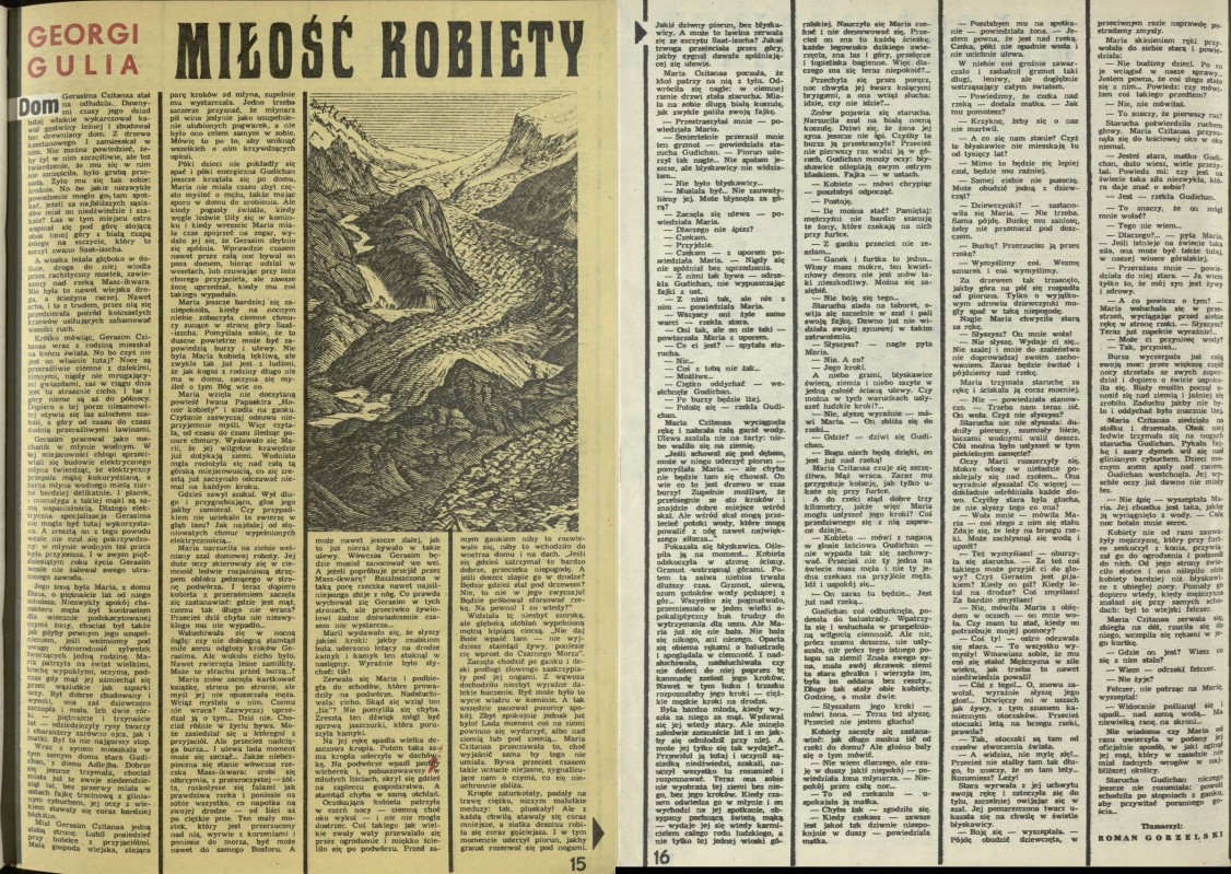 Archiwum / Opowiadanie nr 1972 (13/1983) 81127/123969 Podziel się Tytuł Miłość Kobiety Autor Gulia Georgi Roman Gorzelski Kategoria Opowiadanie Artykuł z numeru 1972 (13/1983) Data wydania 27 marca 1983