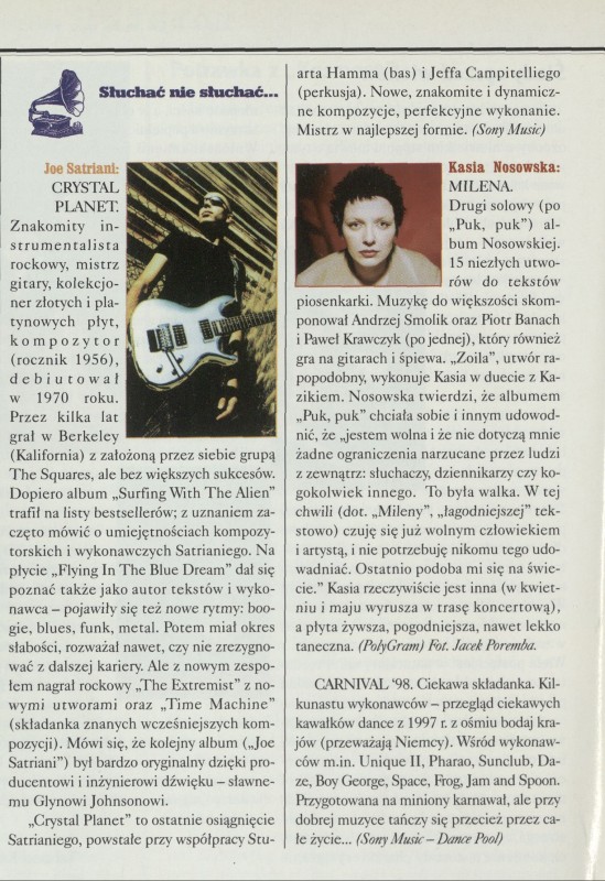 Archiwum nr 2753 (27/1998) 11/12 Podziel się Tytuł Słuchać nie słuchać.. Artykuł z numeru 2753 (2754/1998) Data wydania 29 marca 1998 Tagi muzyka płyty